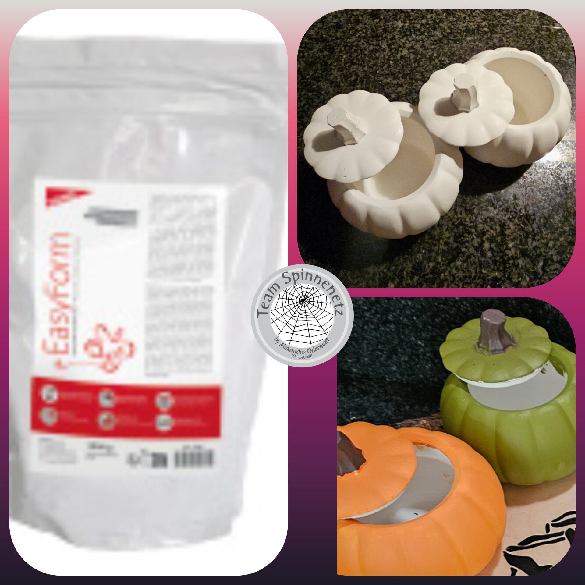 Masse anrühren, in die Form füllen, 8 Std. trocknen lassen, aus der Form nehmen, anmalen und fertig ist das Wunderprodukt 🎃